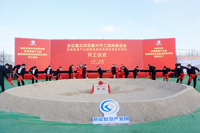 新能智慧綠色高端家具板材一期項目參加2022年全市重點項目集中開工推進(jìn)會活動