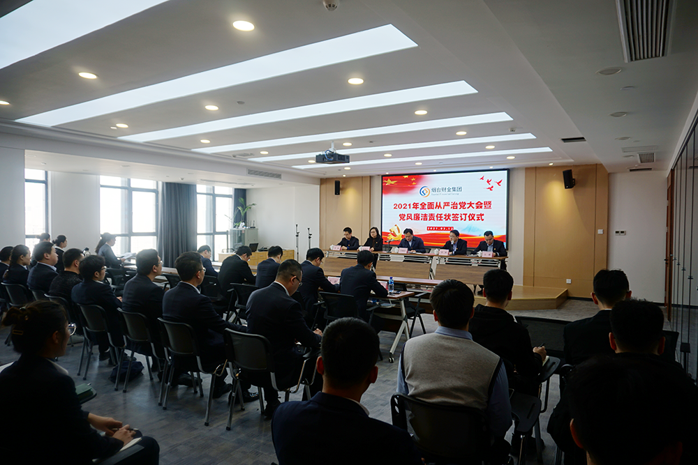 為全面落實從嚴治黨要求,深入推進黨風廉政建設,為集團高質量發(fā)展提供堅實的政治保障,3月12日下午,煙臺財金集團組織全體干部職工召開2021年全面從嚴治黨大會暨黨風廉潔責任狀簽訂儀式。會議由集團黨支部副書記、總經理李輝主持。會上,集團黨支部書記、董事長劉海彬對全面落實從嚴治黨工作提出四點要求:一是強化...