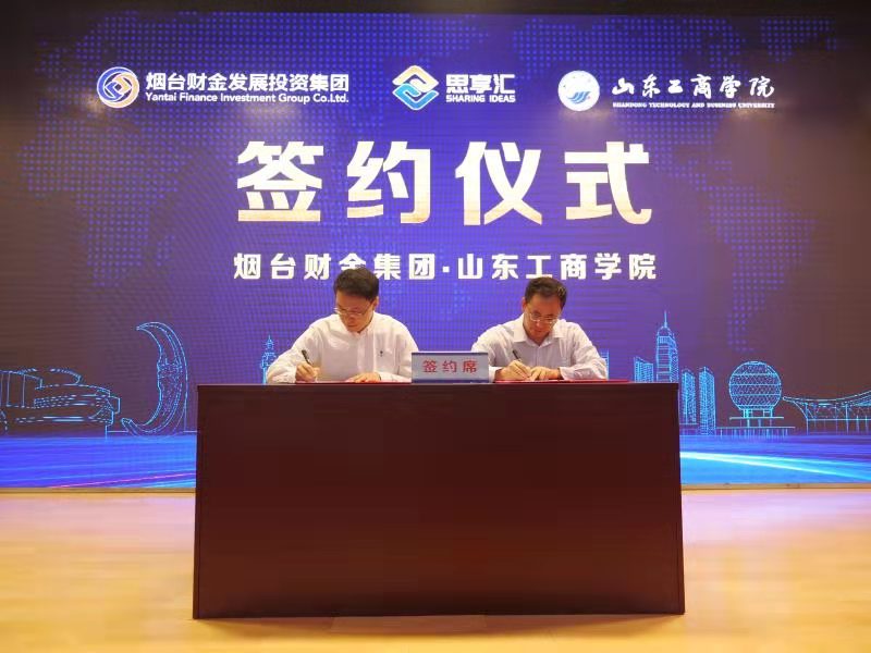 在簽約環(huán)節(jié)中,山東工商學院會計學院院長桂良軍與煙臺市財金集團副總經理李輝分別代表雙方簽訂了《產學研戰(zhàn)略合作意向書》、《研究生社會實踐基地共建協議書》。