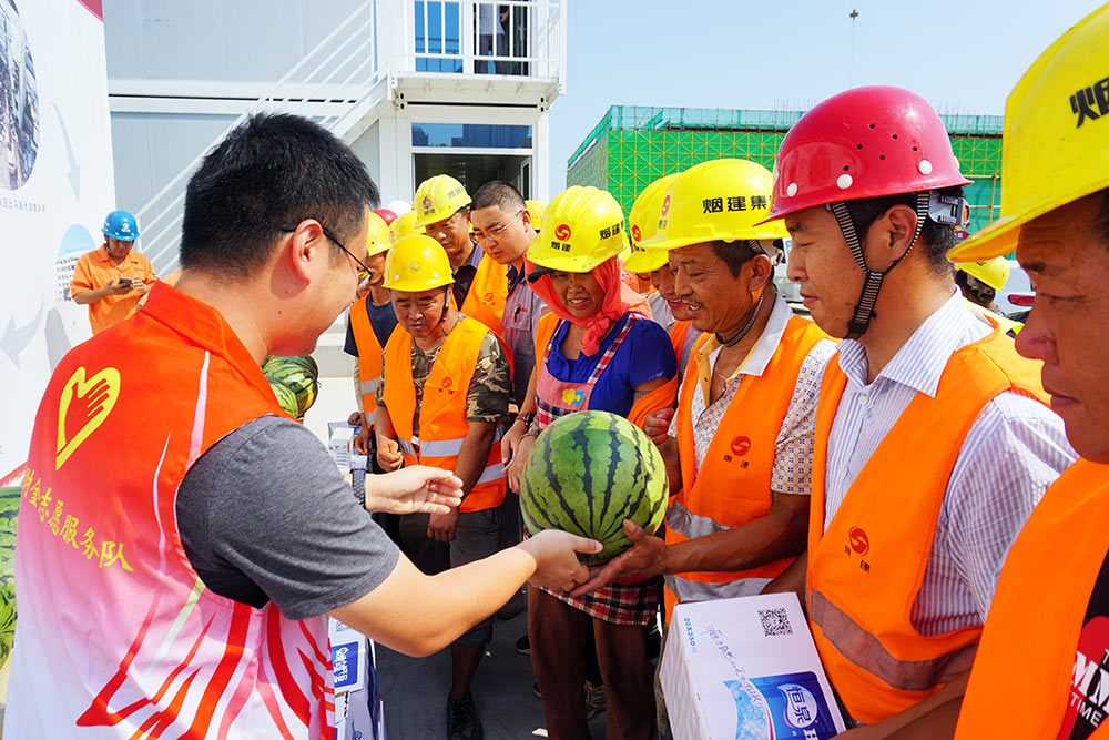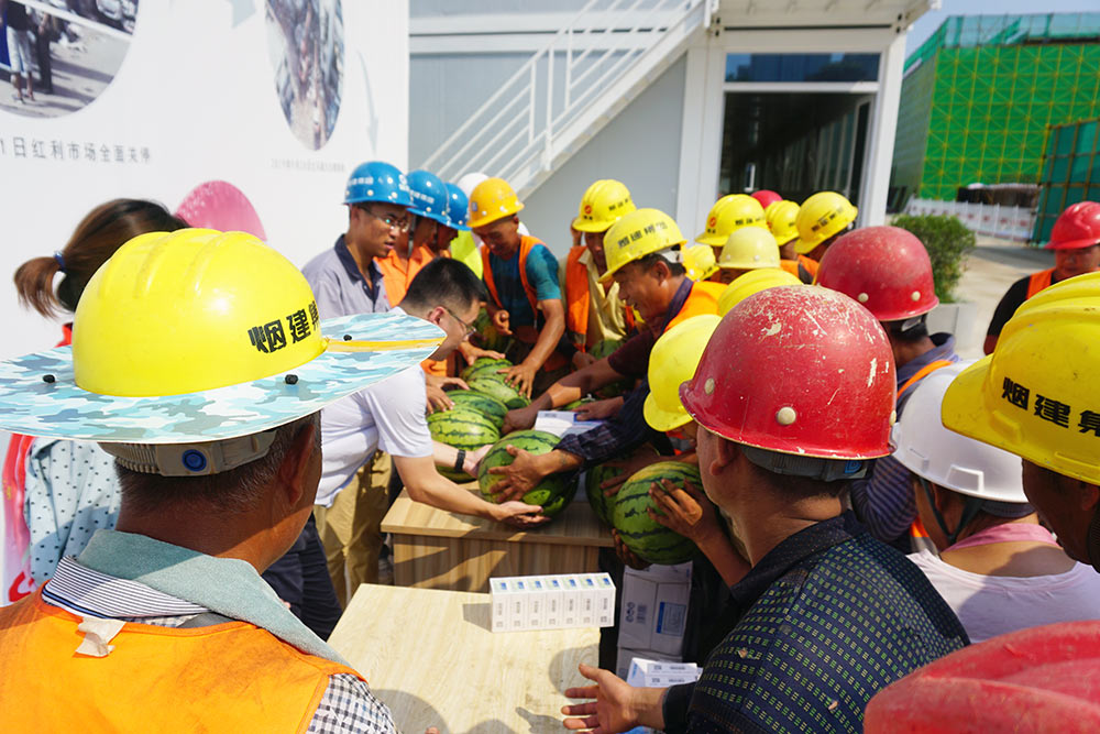 眼下,雖已立秋,但持續(xù)的高溫天氣,讓建設(shè)工地的工人們?nèi)皂斨籽琢胰?,揮汗如雨,迎戰(zhàn)“烤”驗。為促進一線工人身心健康,實現(xiàn)工地安全生產(chǎn),8月18日上午,財政監(jiān)管市屬國有企業(yè)“紅色先鋒”黨建聯(lián)盟一行20名黨員代表,來到芝罘灣廣場建設(shè)工地,組織開展了“進工地送清涼”活動,為工人們送上西瓜、礦泉水、藥品等降暑物品,向堅守在高溫下的一線工人送去清涼和關(guān)懷。