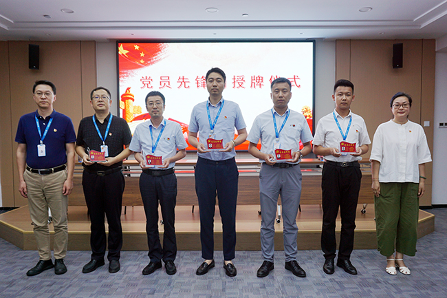 隨后,李輝與集團(tuán)紀(jì)檢委員、監(jiān)察專員姜雪寧一同為榮獲“黨員先鋒崗”稱號(hào)的5名黨員授牌。
