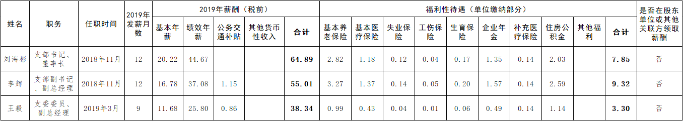 煙臺財金集團(tuán)負(fù)責(zé)人2019年薪酬披露